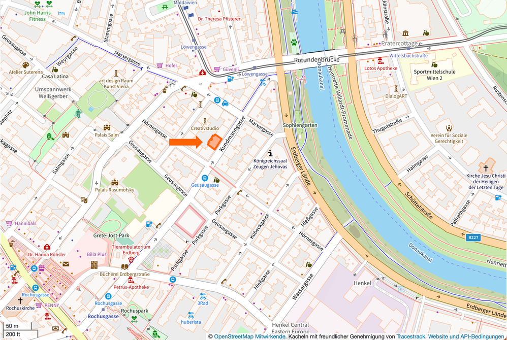 Wenige Minuten Gehzeit zur U3 Station Rochusgasse, Bus 74 A, Bus 4A, Straßenbahnlinie 1. Mit der U3 nur wenige U-Bahnminuten zur Innenstadt oder eine Station zum Verkehrsknotenpunkt Wien Mitte (U3, U4, Schnellbahn, CAT/City Airport Train). WienMobil Rad Bikesharing-Station 120 Meter entfernt (Kundmanngasse 2). E-Ladestationen in der Nähe (z.B. Kundmanngasse, Erdbergstraße, Rasumofskygasse). Taxistand um die Ecke (Marxergasse).